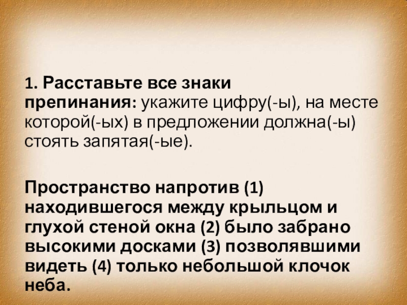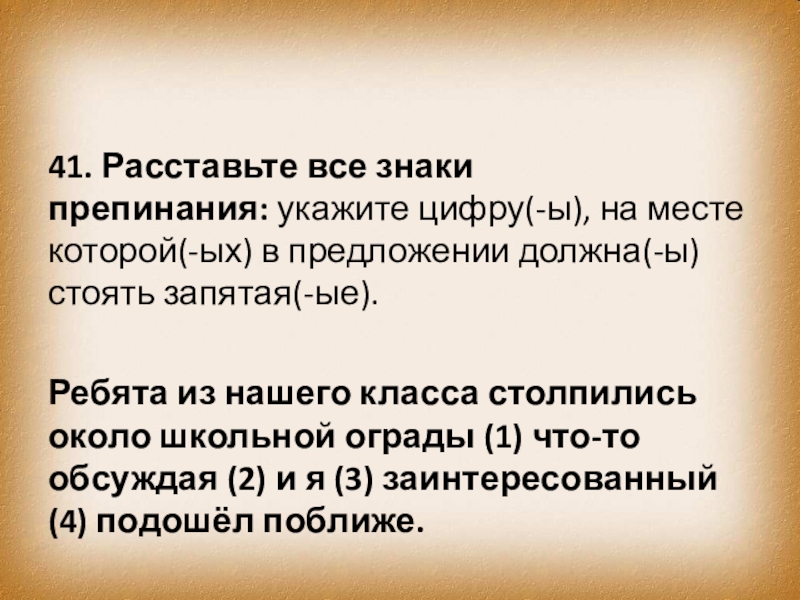 Слайд 4031. Расставьте все знаки препинания: укажите цифру(-ы), на месте которой(-ых) в предложении должна(-ы)