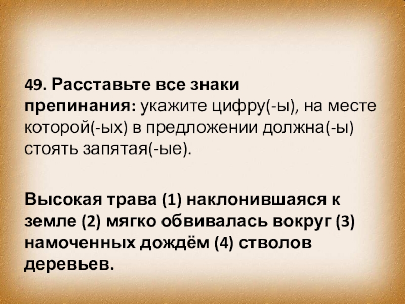 Слайд 5849. Расставьте все знаки препинания: укажите цифру(-ы), на месте которой(-ых) в предложении должна(-ы)