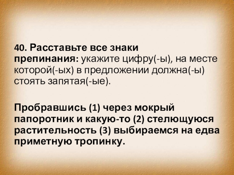 Слайд 4940. Расставьте все знаки препинания: укажите цифру(-ы), на месте которой(-ых) в предложении должна(-ы)