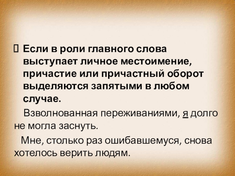 Слайд 6Если в роли главного слова выступает личное местоимение, причастие или причастный