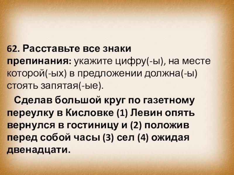 Слайд 134. Расставьте знаки препинания: укажите цифру(-ы), на месте которой(-ых) в предложении должна(-ы)