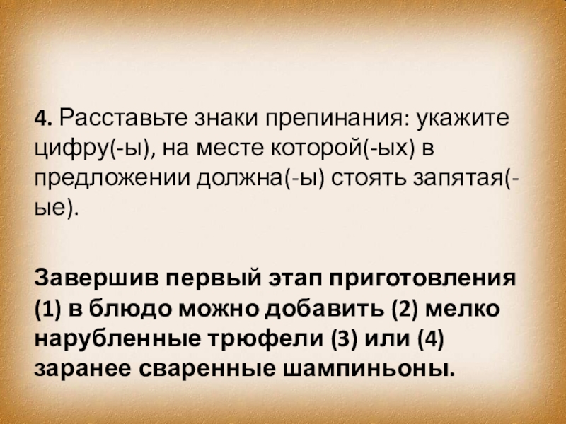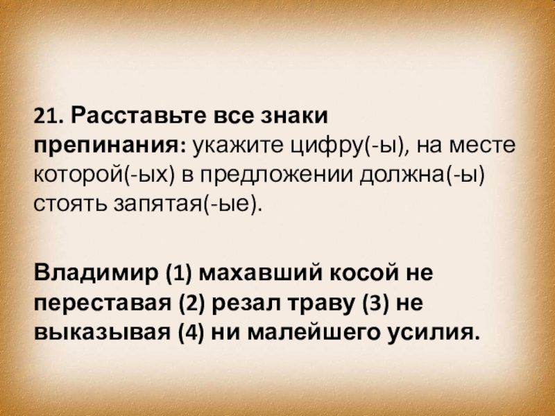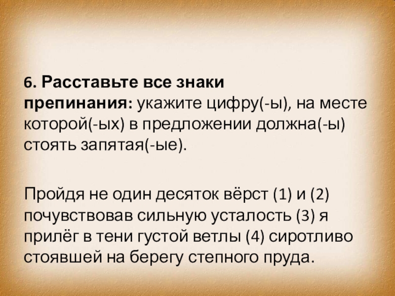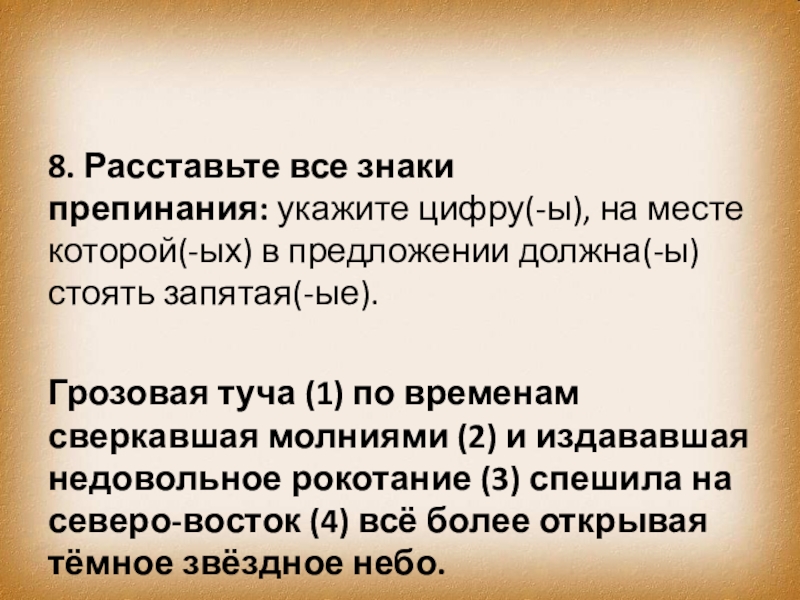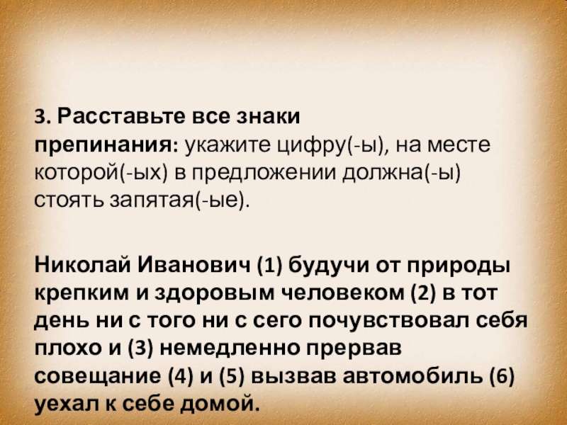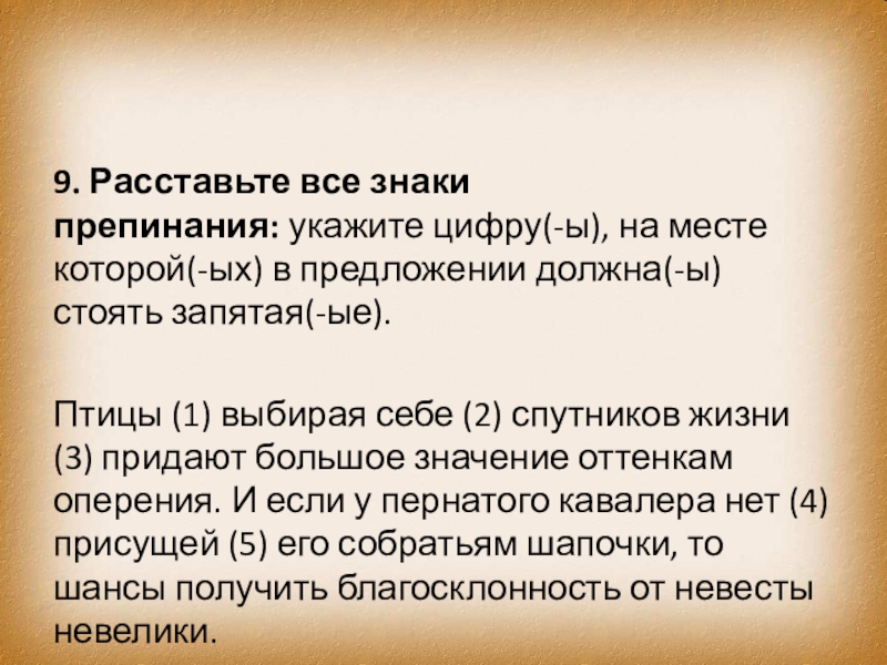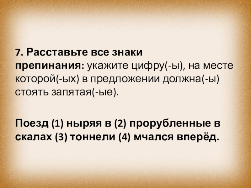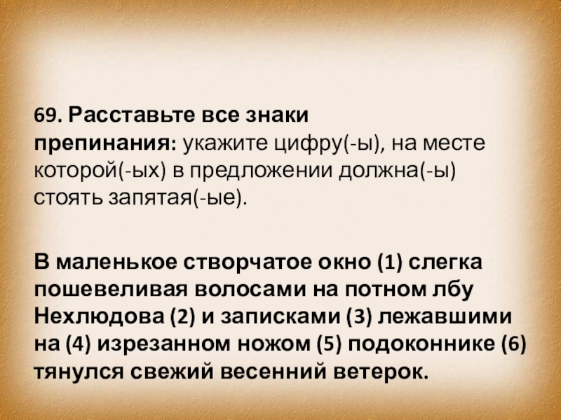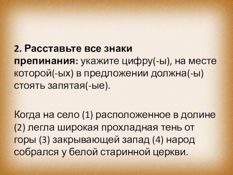 Слайд 7869. Расставьте все знаки препинания: укажите цифру(-ы), на месте которой(-ых) в предложении должна(-ы)