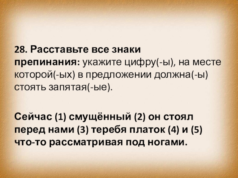 Слайд 3728. Расставьте все знаки препинания: укажите цифру(-ы), на месте которой(-ых) в предложении должна(-ы)