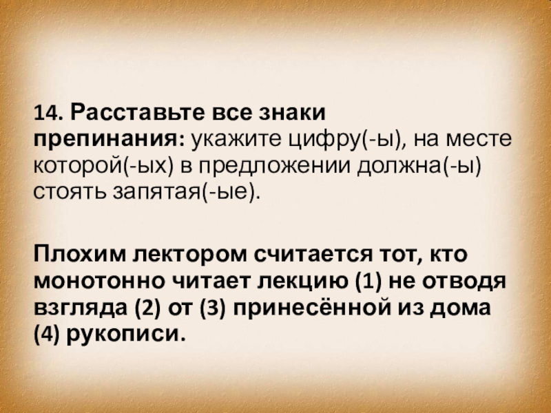 Слайд 2314. Расставьте все знаки препинания: укажите цифру(-ы), на месте которой(-ых) в предложении должна(-ы)