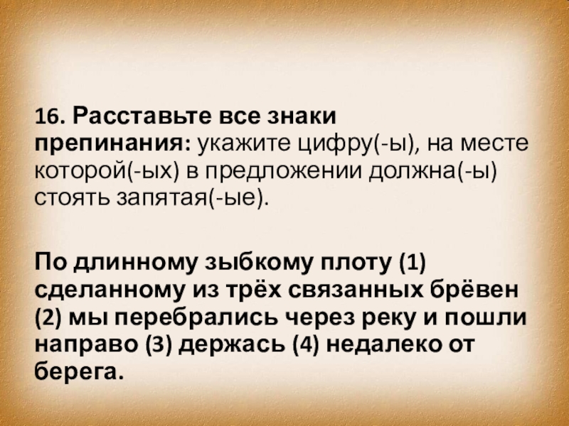 Слайд 2516. Расставьте все знаки препинания: укажите цифру(-ы), на месте которой(-ых) в предложении должна(-ы)