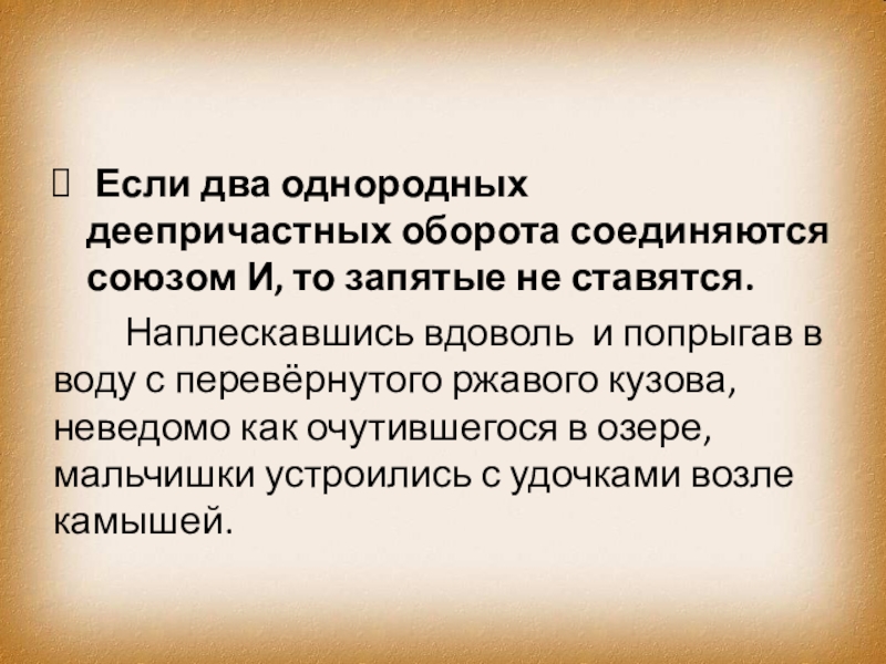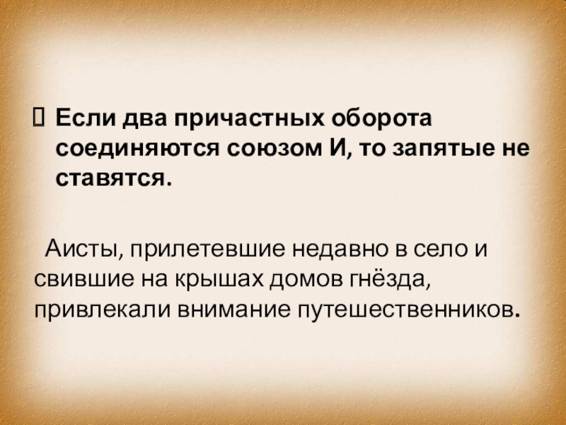 Слайд 5Если два причастных оборота соединяются союзом И, то запятые не ставятся.