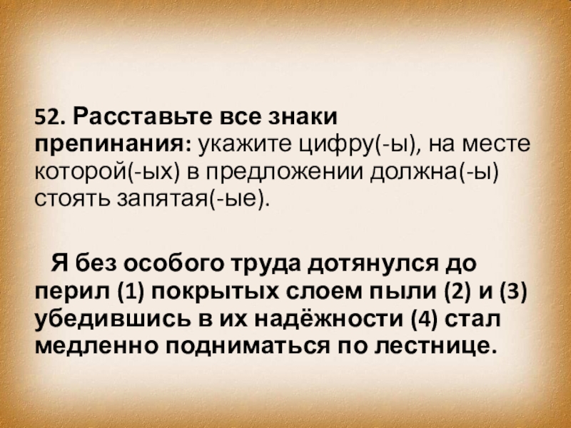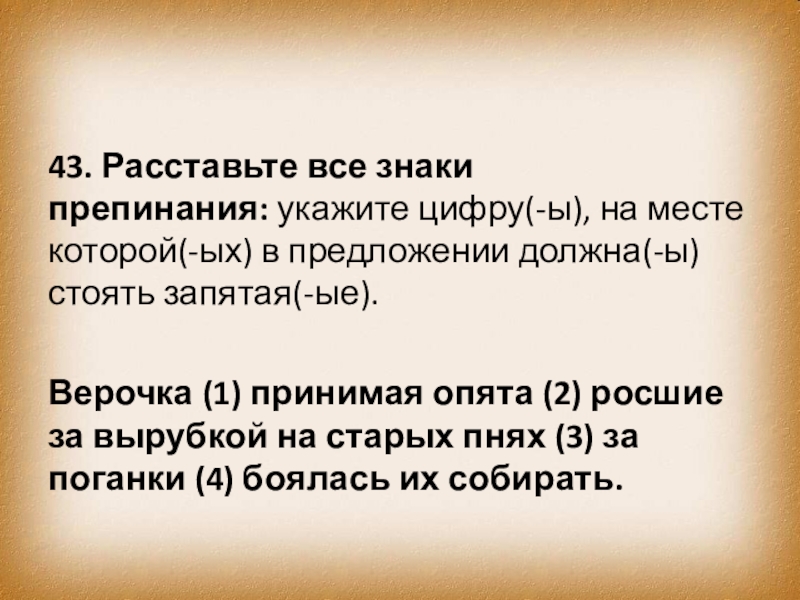 Слайд 5243. Расставьте все знаки препинания: укажите цифру(-ы), на месте которой(-ых) в предложении должна(-ы)