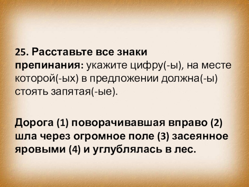 Слайд 3425. Расставьте все знаки препинания: укажите цифру(-ы), на месте которой(-ых) в предложении должна(-ы)