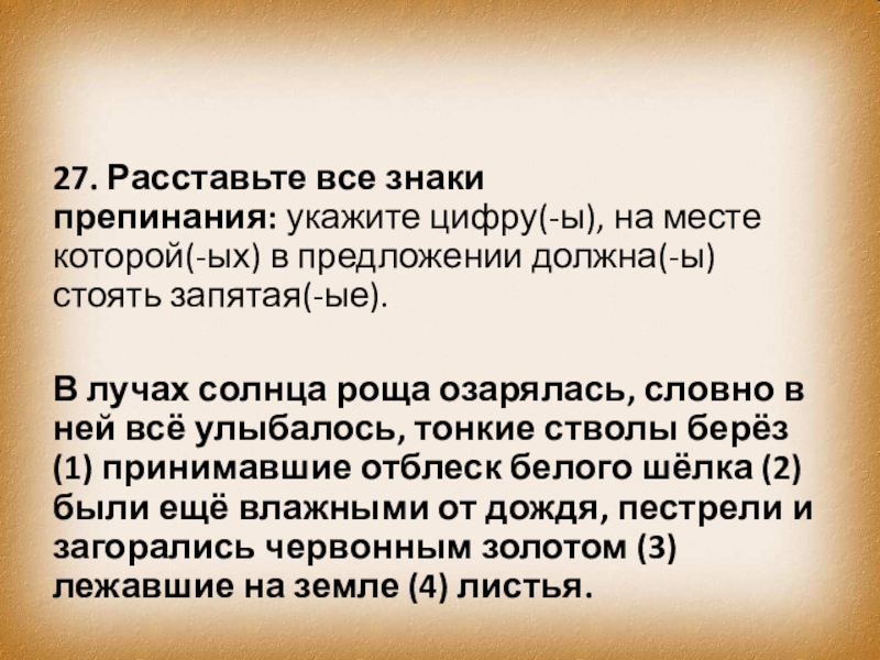 Слайд 3627. Расставьте все знаки препинания: укажите цифру(-ы), на месте которой(-ых) в предложении должна(-ы)