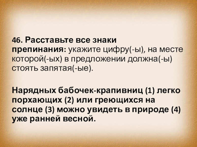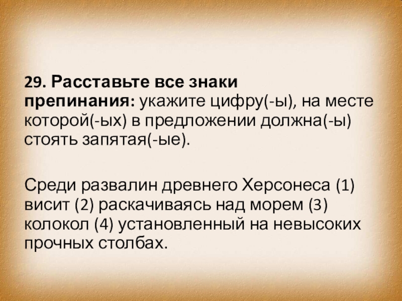 Слайд 3829. Расставьте все знаки препинания: укажите цифру(-ы), на месте которой(-ых) в предложении должна(-ы)