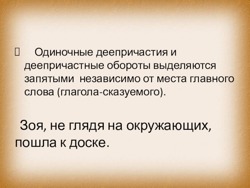 Слайд 7 Одиночные деепричастия и деепричастные обороты выделяются запятыми независимо от