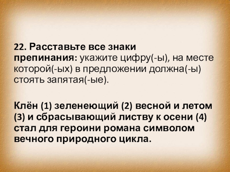 Слайд 189. Расставьте все знаки препинания: укажите цифру(-ы), на месте которой(-ых) в предложении должна(-ы)