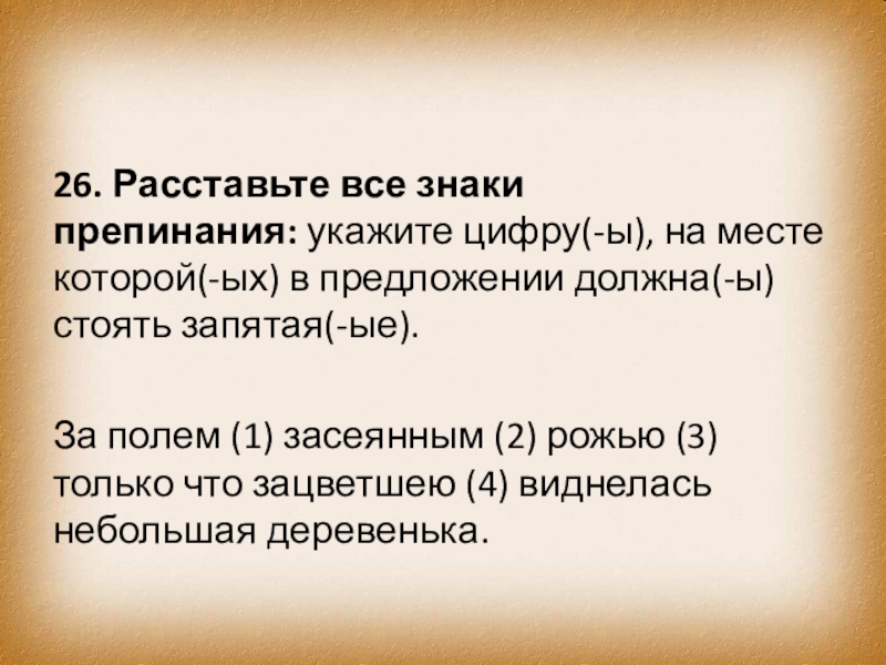 Слайд 3526. Расставьте все знаки препинания: укажите цифру(-ы), на месте которой(-ых) в предложении должна(-ы)