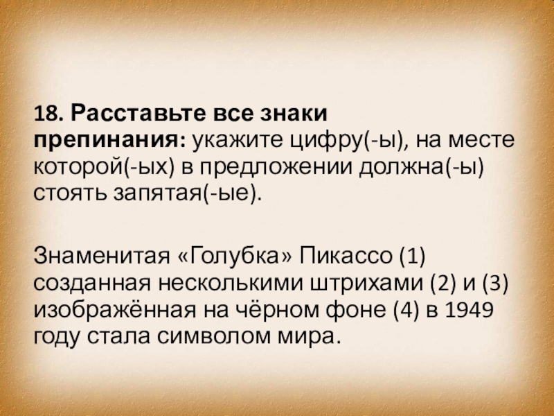 Слайд 2718. Расставьте все знаки препинания: укажите цифру(-ы), на месте которой(-ых) в предложении должна(-ы)
