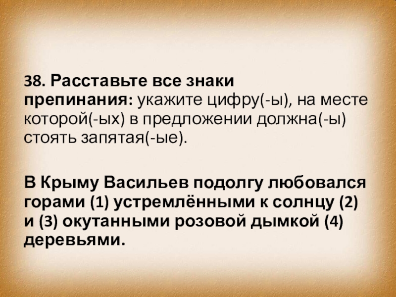 Слайд 4738. Расставьте все знаки препинания: укажите цифру(-ы), на месте которой(-ых) в предложении должна(-ы)