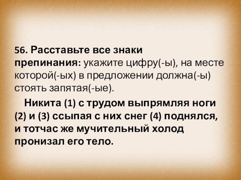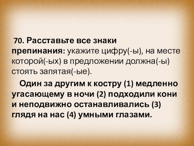 Слайд 79 70. Расставьте все знаки препинания: укажите цифру(-ы), на месте которой(-ых) в предложении