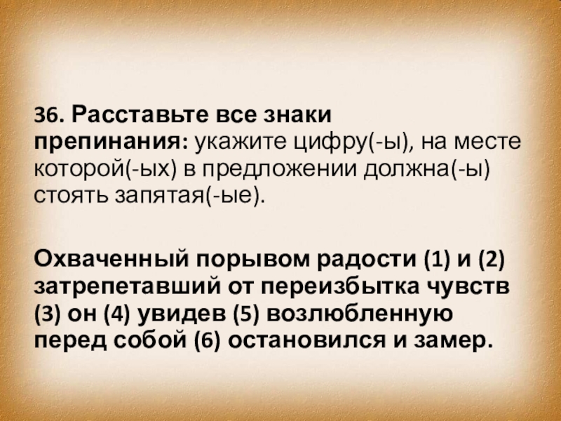 Слайд 4536. Расставьте все знаки препинания: укажите цифру(-ы), на месте которой(-ых) в предложении должна(-ы)