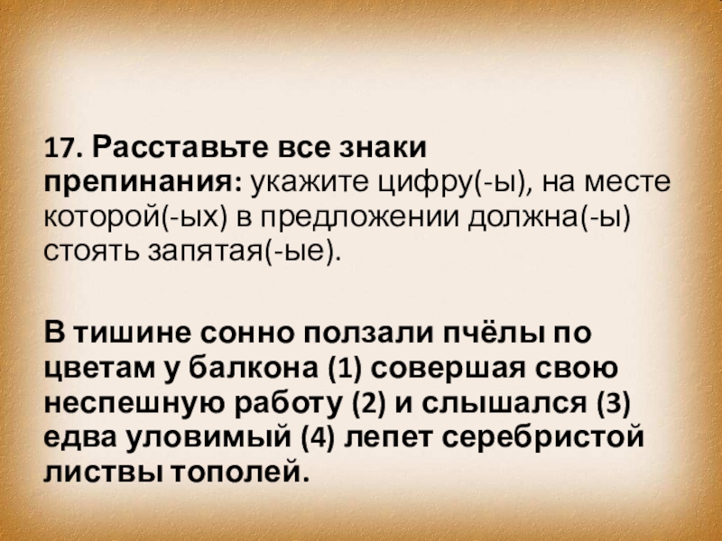 Слайд 2617. Расставьте все знаки препинания: укажите цифру(-ы), на месте которой(-ых) в предложении должна(-ы)