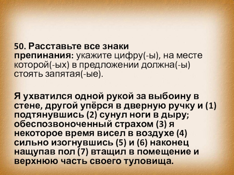 Слайд 5950. Расставьте все знаки препинания: укажите цифру(-ы), на месте которой(-ых) в предложении должна(-ы)