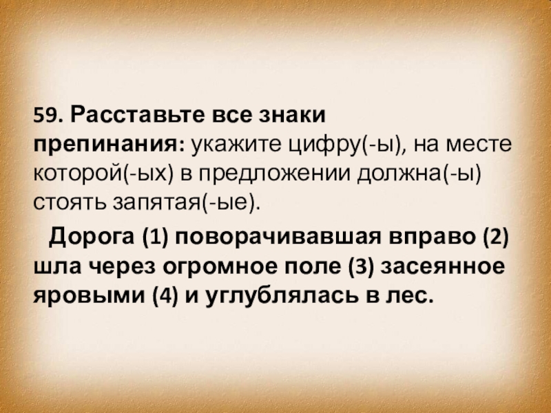 Слайд 6859. Расставьте все знаки препинания: укажите цифру(-ы), на месте которой(-ых) в предложении должна(-ы)