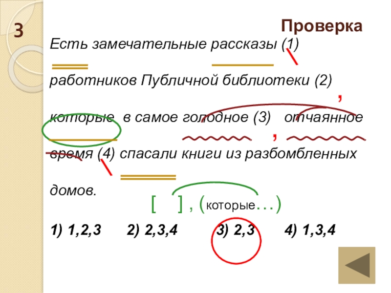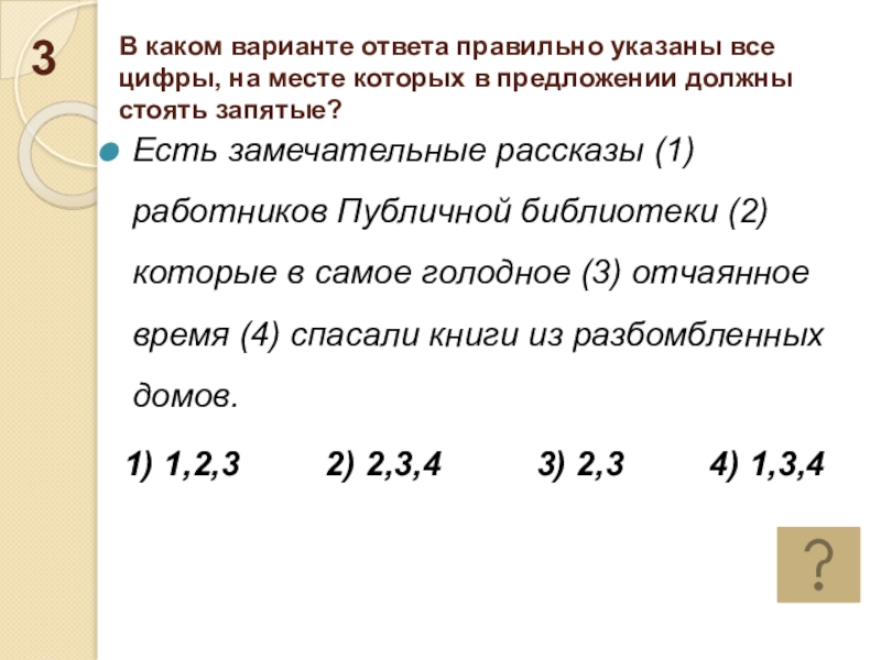 Есть замечательные рассказы (1) работников Публичной библиотеки (2) которые в самое голодное (3) отчаянное время (4) спасали книги из разбомбленных домов.