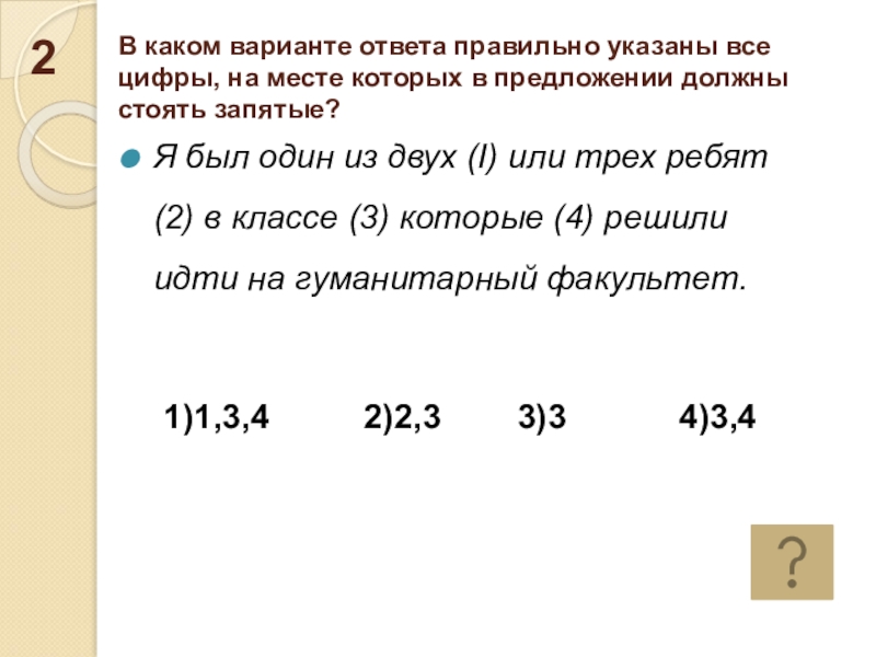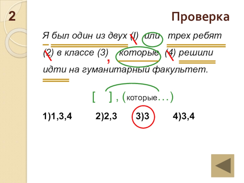 Я был один из двух (I) или трех ребят (2) в классе (3) которые (4) решили идти на гуманитарный факультет.
