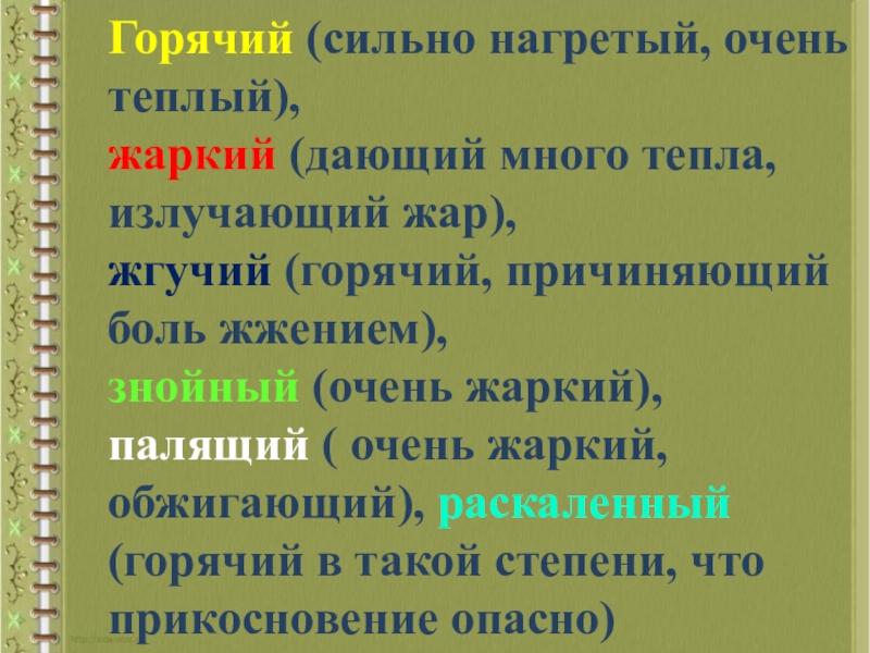 Слайд 13Горячий (сильно нагретый, очень теплый),