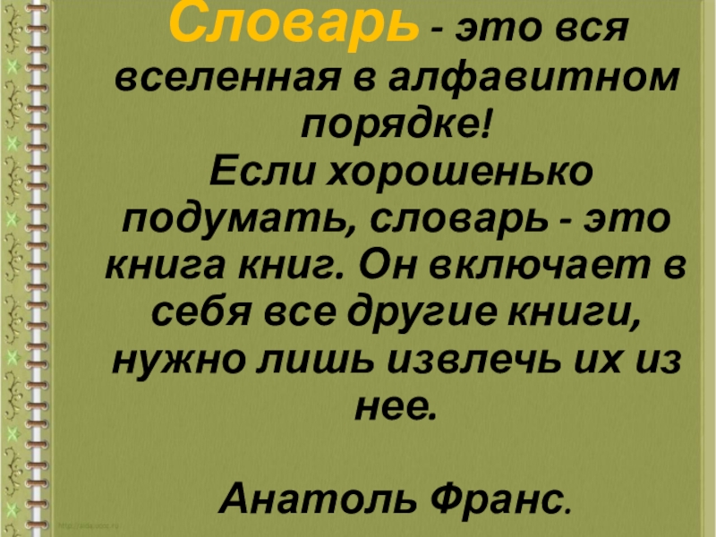 Слайд 3Словарь - это вся вселенная в алфавитном порядке!