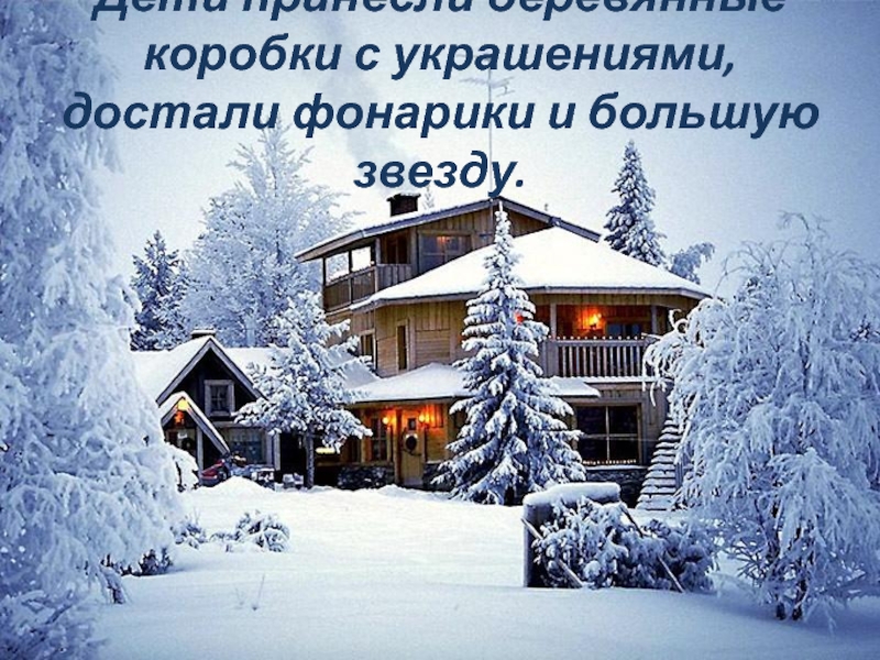 Слайд 9Дети принесли деревянные коробки с украшениями, достали фонарики и большую звезду.