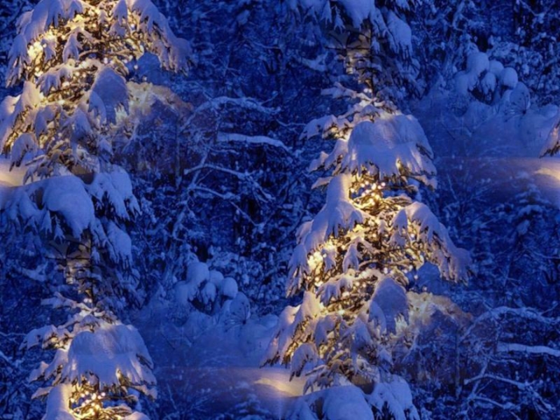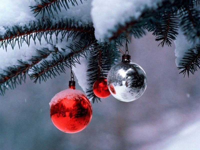 Елку украсили, окутали золотым дождиком, повесили стеклянные бусы и зажгли