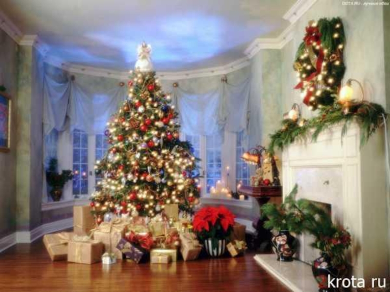 В гостиную втащили большую елку.