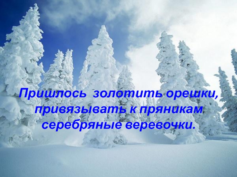 Слайд 13 Пришлось золотить орешки, привязывать к пряникам серебряные веревочки.