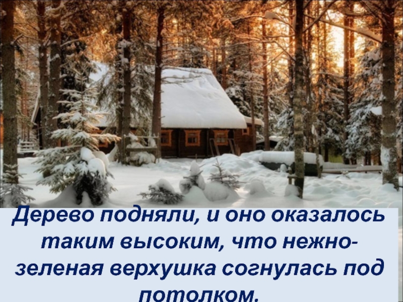 Слайд 5 Дерево подняли, и оно оказалось таким высоким, что нежно-зеленая верхушка согнулась