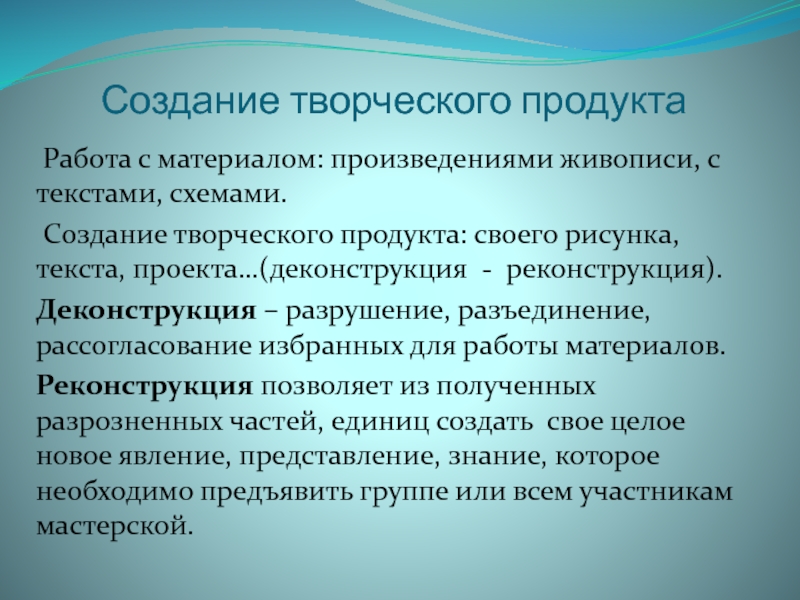 Создание творческого продукта: своего рисунка, текста, проекта…(деконструкция - реконструкция).