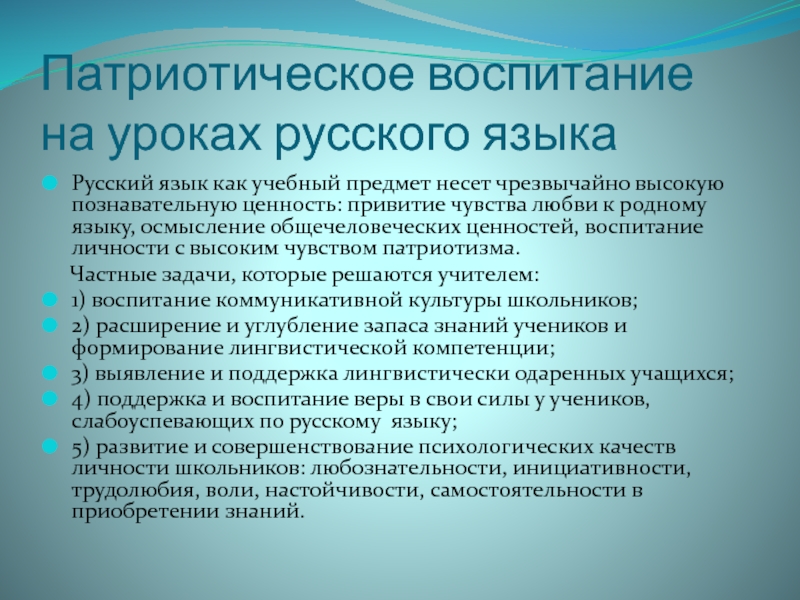 Слайд 2Патриотическое воспитание на уроках русского языка
