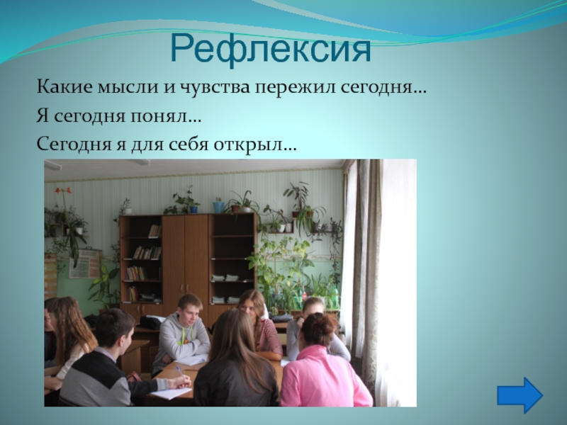 ответьте на вопросы: «Какие мысли и чувства пережил в ходе мастерской? Какое сделал открытие?»;