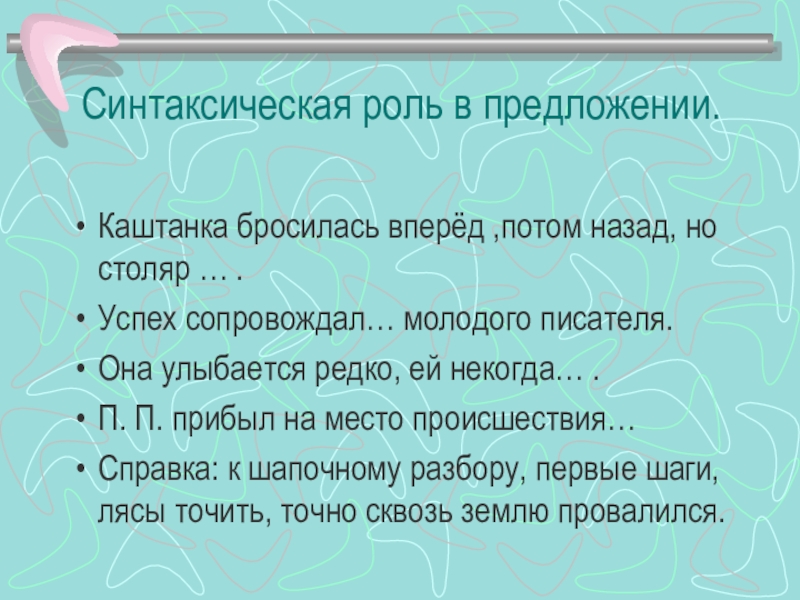 Слайд 8Синтаксическая роль в предложении.