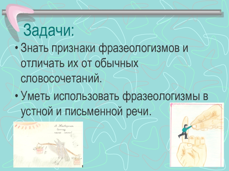 Знать признаки фразеологизмов и отличать их от обычных словосочетаний.