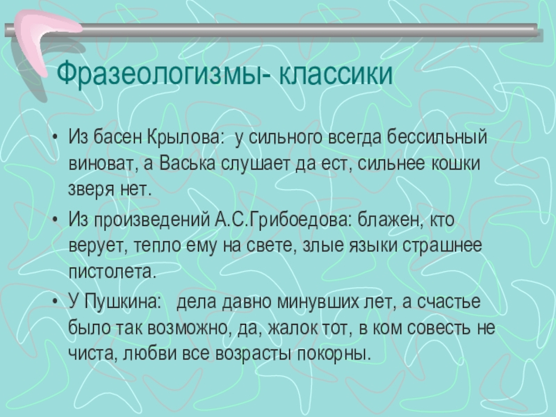 Слайд 12Фразеологизмы- классики