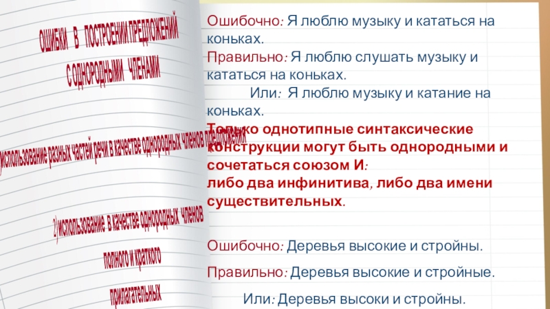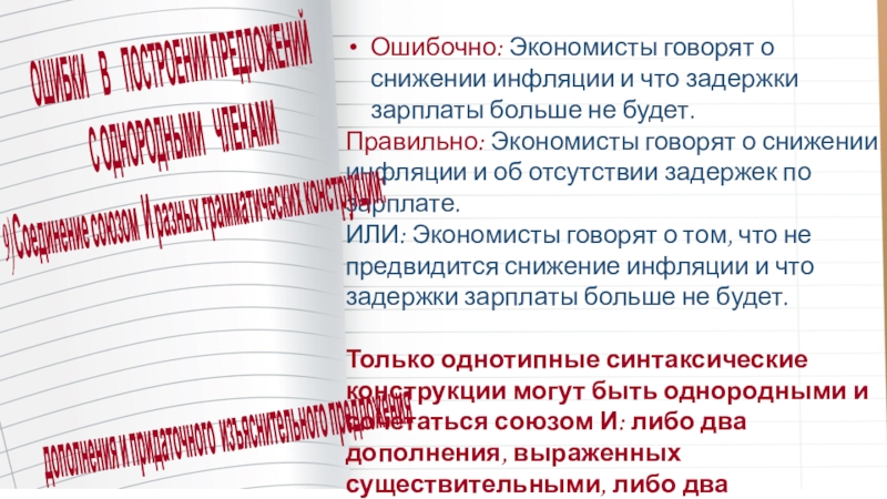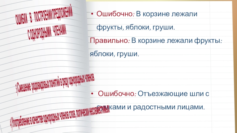 4) Употребление в качестве однородных членов слов, логически несовместимых