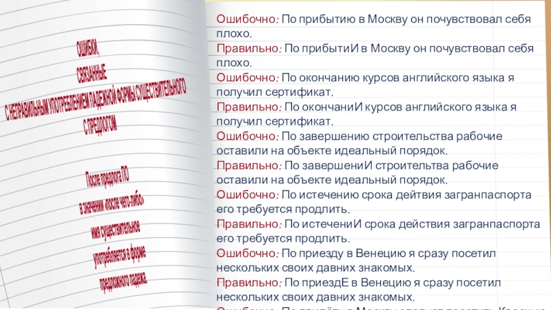 С НЕПРАВИЛЬНЫМ УПОТРЕБЛЕНИЕМ ПАДЕЖНОЙ ФОРМЫ СУЩЕСТВИТЕЛЬНОГО С ПРЕДЛОГОМ