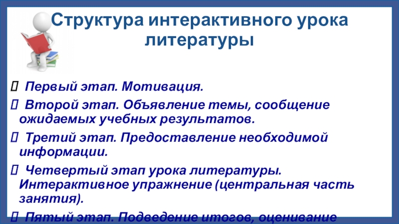 Четвертый этап урока литературы. Интерактивное упражнение (центральная часть занятия).