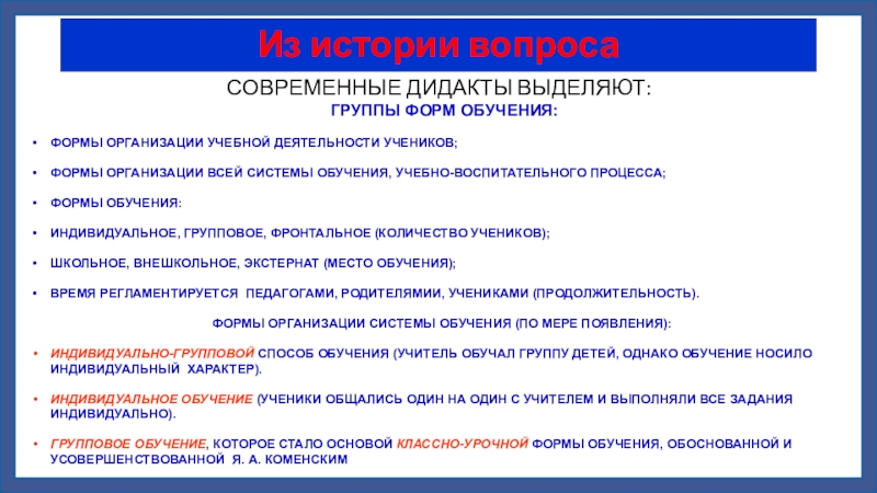 ФОРМЫ ОРГАНИЗАЦИИ СИСТЕМЫ ОБУЧЕНИЯ (ПО МЕРЕ ПОЯВЛЕНИЯ):