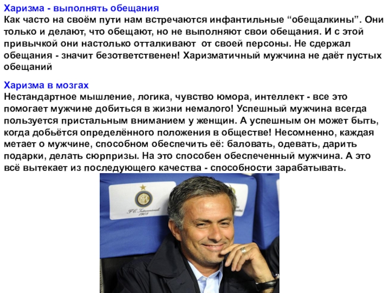 Нестандартное мышление, логика, чувство юмора, интеллект - все это помогает мужчине добиться в жизни немалого! Успешный мужчина всегда пользуется пристальным вниманием у женщин. А успешным он может быть, когда добьётся определённого положения в обществе! Несомненно, каждая метает о мужчине, способном обеспечить её: баловать, одевать, дарить подарки, делать сюрпризы. На это способен обеспеченный мужчина. А это всё вытекает из последующего качества - способности зарабатывать.