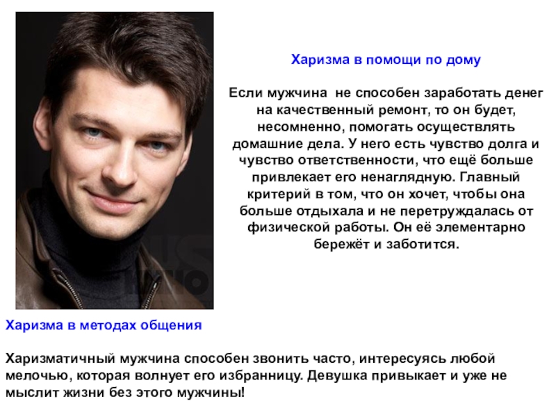 Харизматичный мужчина способен звонить часто, интересуясь любой мелочью, которая волнует его избранницу. Девушка привыкает и уже не мыслит жизни без этого мужчины!