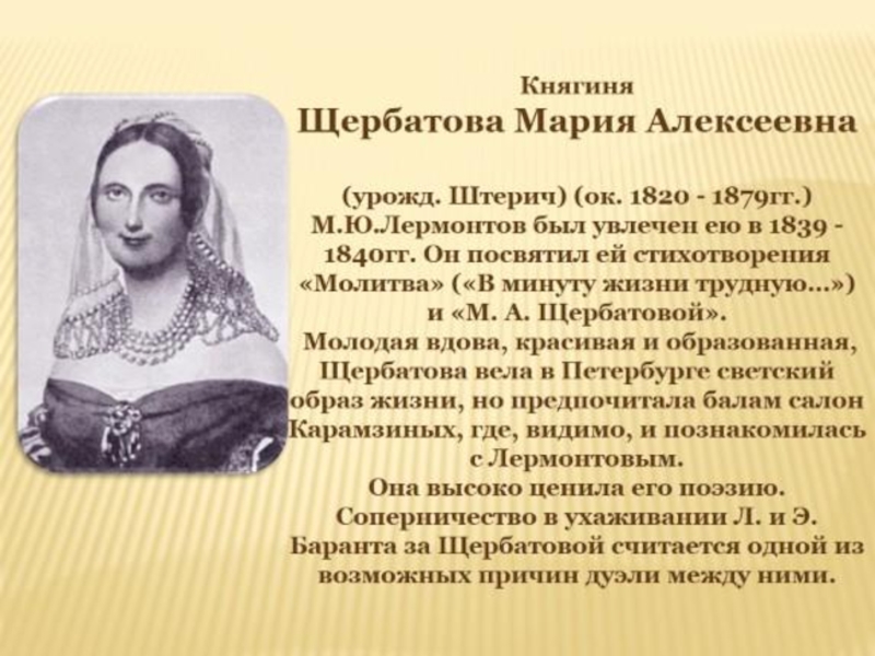 Слайд 7Портрет Варвары Лопухиной, написанный М. Ю. Лермонтовым в 1835 г.