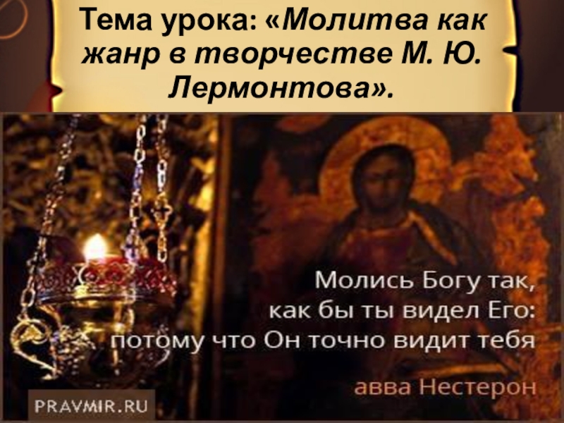 Тема урока: «Молитва как жанр в творчестве М. Ю. Лермонтова».