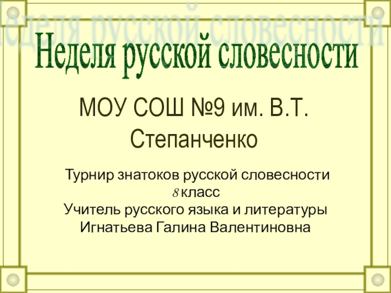 Слайд 1МОУ СОШ №9 им. В.Т. Степанченко
