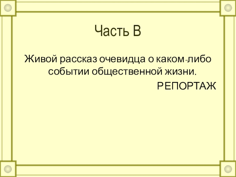 Живой рассказ очевидца о каком-либо событии общественной жизни.