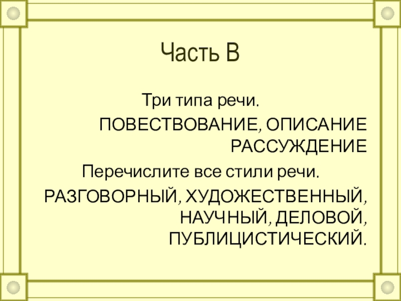 РАЗГОВОРНЫЙ, ХУДОЖЕСТВЕННЫЙ, НАУЧНЫЙ, ДЕЛОВОЙ, ПУБЛИЦИСТИЧЕСКИЙ.